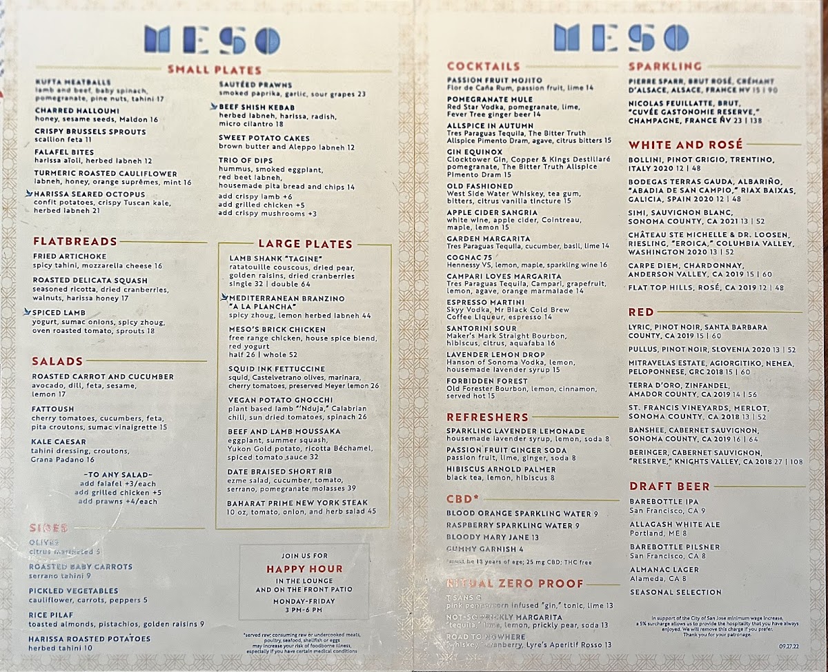 Welcome to Meso Modern Mediterranean, a culinary gem nestled in the heart of San Jose, California. This Mediterranean restaurant offers a delightful escape into a world of rich flavors and warm hospitality, perfect for food enthusiasts craving a taste of the Mediterranean.