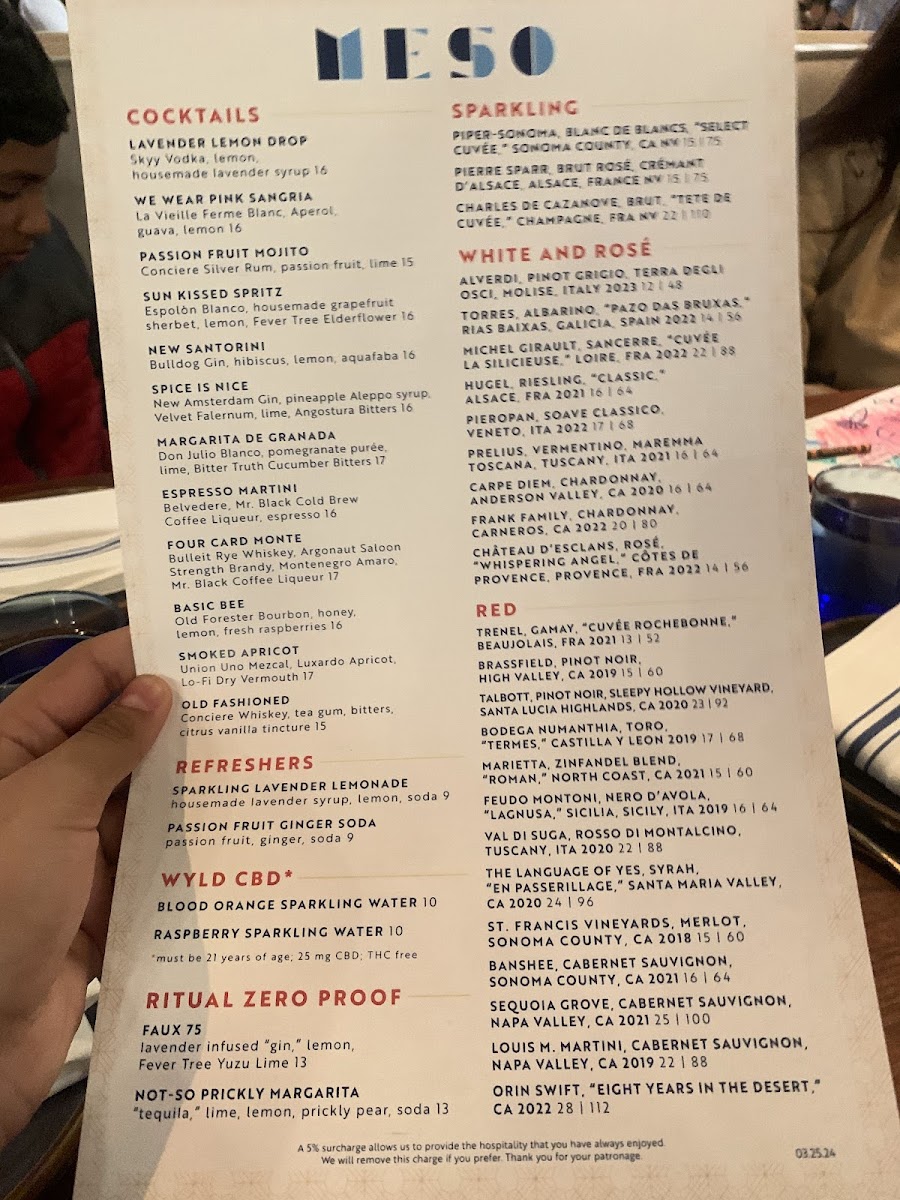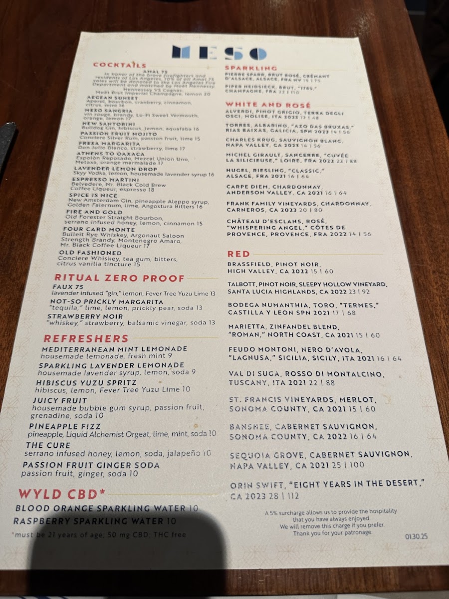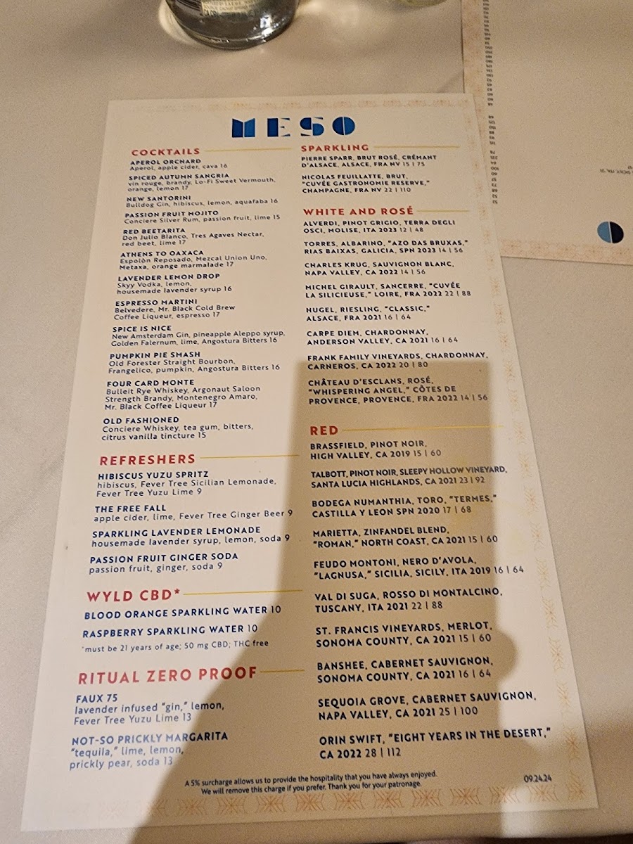 The moment you step into Meso, you're welcomed by a beautifully designed ambiance that strikes a perfect balance between modern elegance and comforting familiarity. Whether you choose to dine indoors or bask in the cozy outdoor seating, the inviting atmosphere sets the stage for an exceptional dining experience.